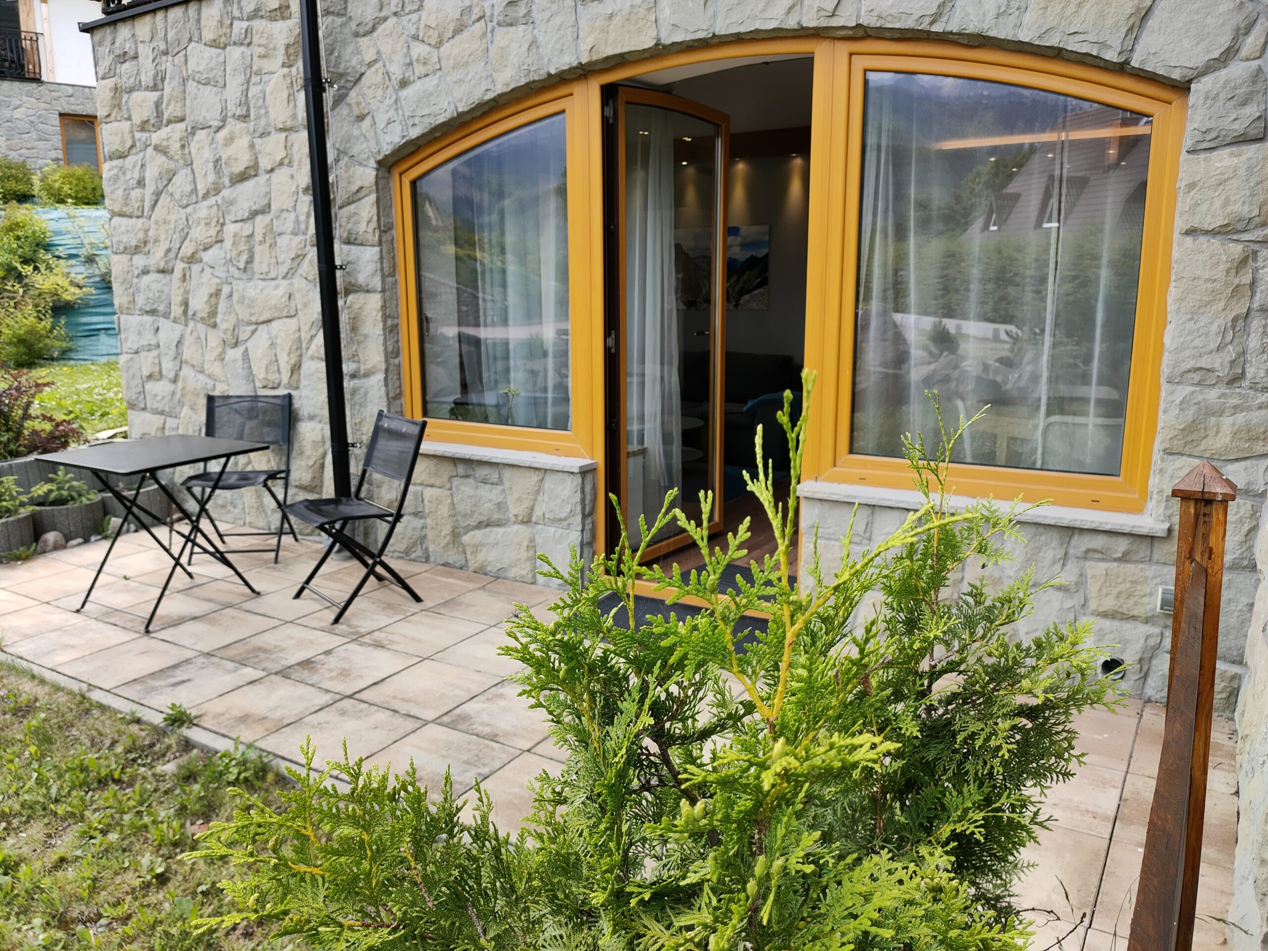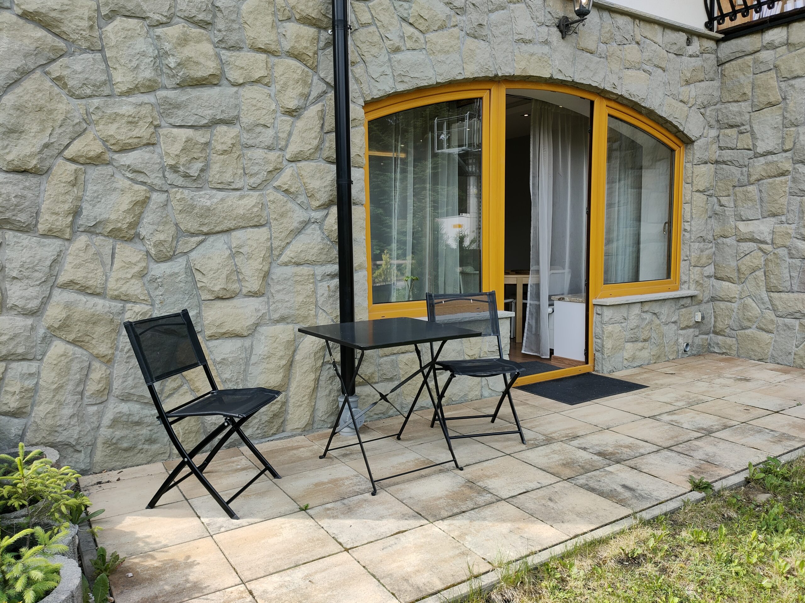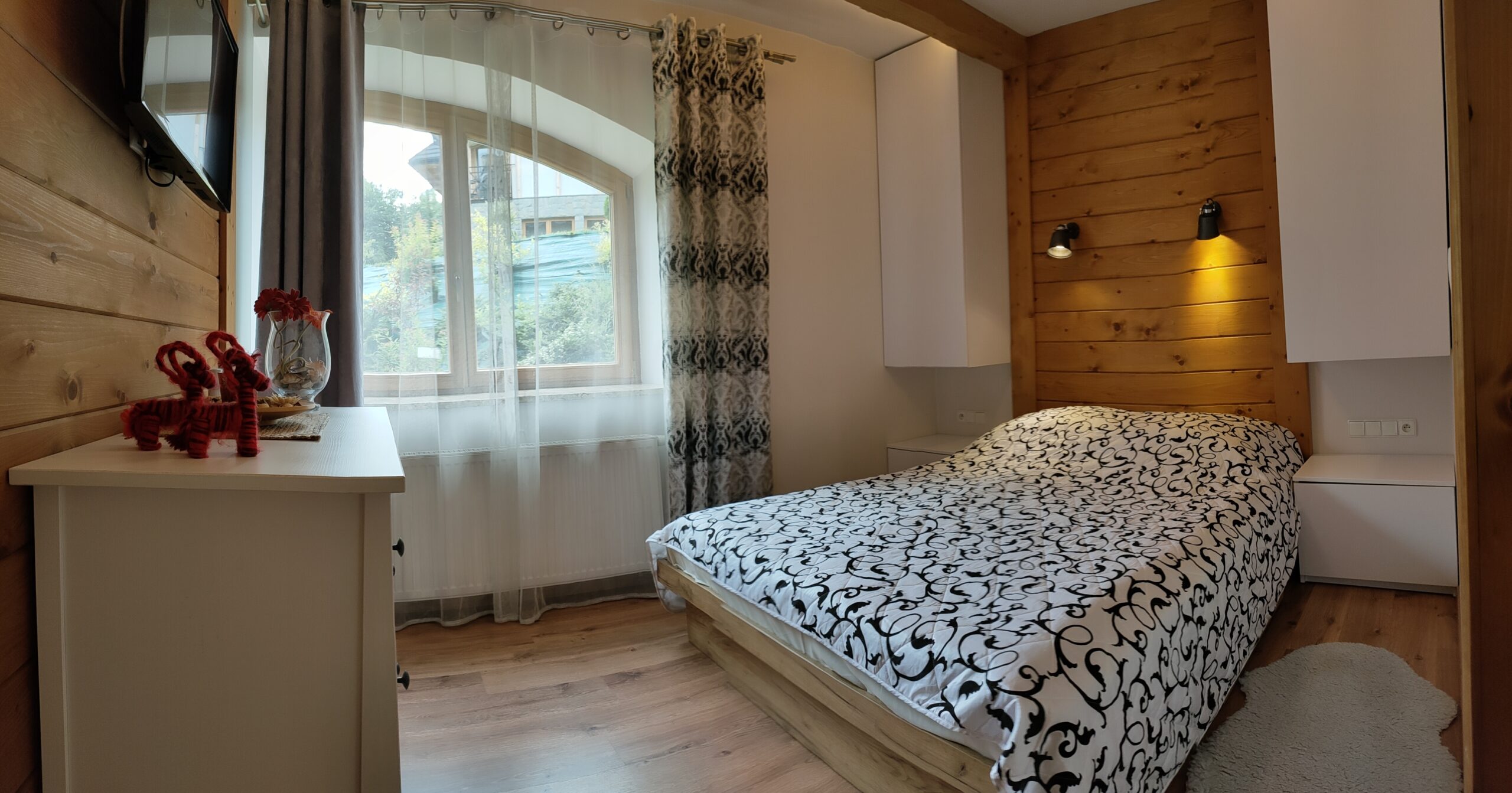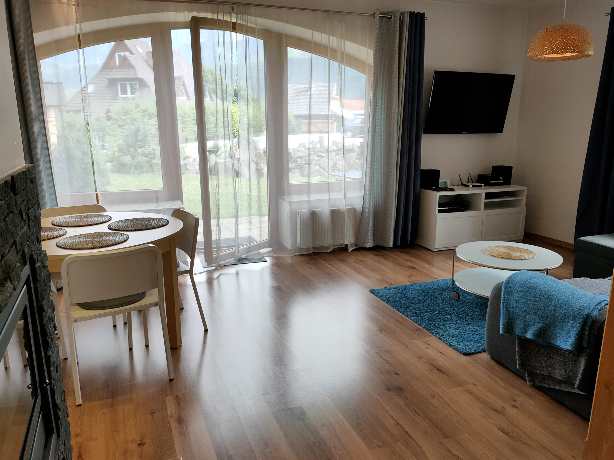 Byt STALOWY plocha 50 metrů čtverečních nachází se v přízemí s přímým vstupem na terasu. Má samostatnou ložnici s velkou manželskou postelí,